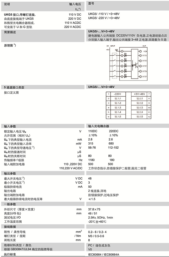 UKG5 系列 帶光電耦合器 UKG5/-...V/+3~48V