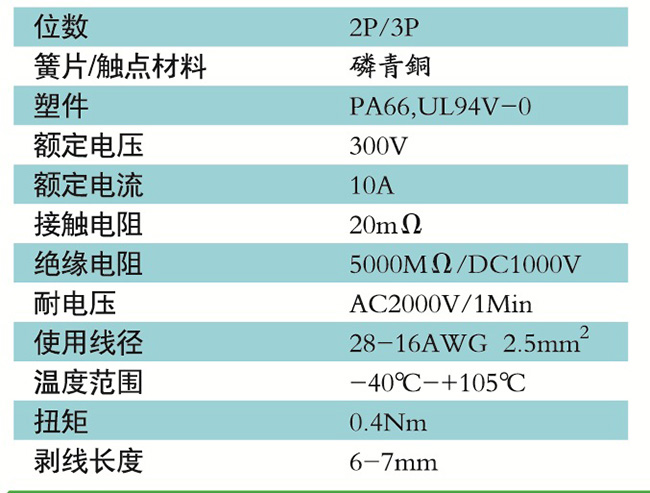 接線端子的絕緣材料用改性的尼龍(PA66),能達(dá)到或超過IEC947-7-1EN60947-7-1標(biāo)準(zhǔn),阻燃等級達(dá)到UL94V-0具有良好的電氣性能和機(jī)械性能。螺絲用高強(qiáng)度的鋼制成鍍鋅或鎳處理,導(dǎo)電體四方針用合金銅制成表面鍍錫,壓片采用彈性及極強(qiáng)的磷青銅表面鍍錫或鎳;壓線框用抗應(yīng)力裂縫腐蝕的合金銅制成,這些金屬表面還鍍錫或鍍鎳加以保護(hù)。設(shè)計完全符合IEC60947-7-1.GB14048.7等標(biāo)準(zhǔn)。